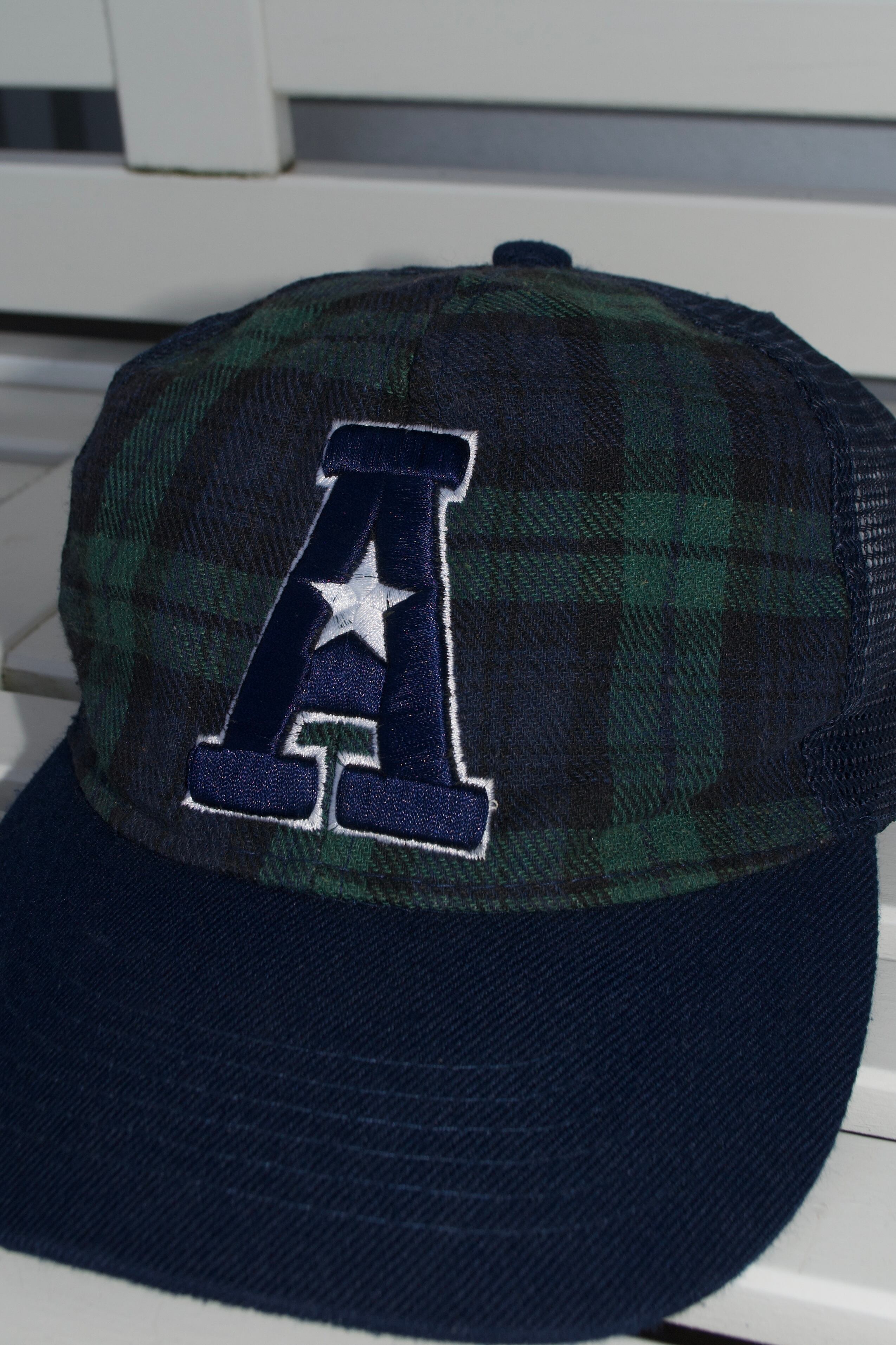 グリーンチェック柄のメッシュキャップ