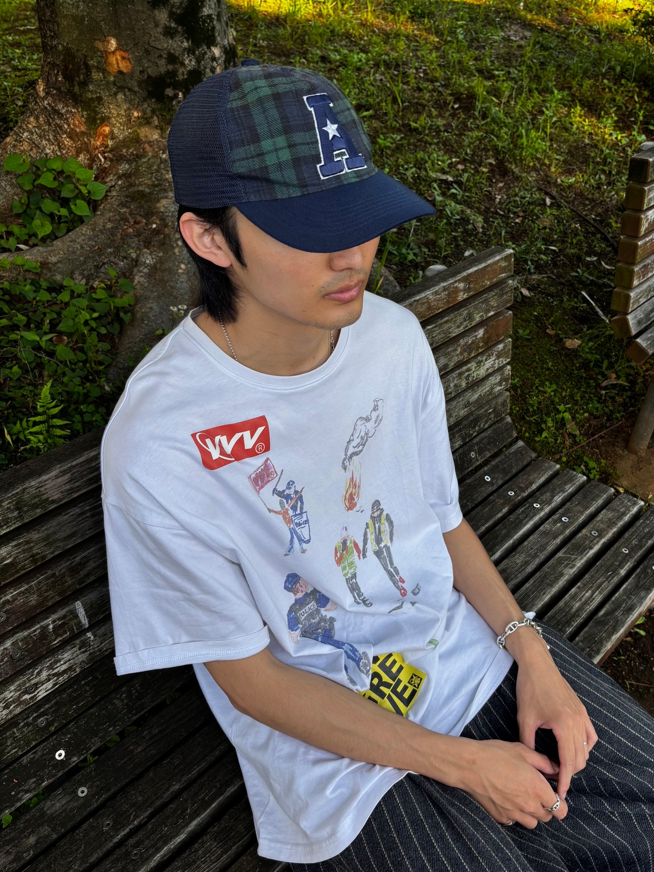 グリーンチェック柄のキャップは中々見ないので、