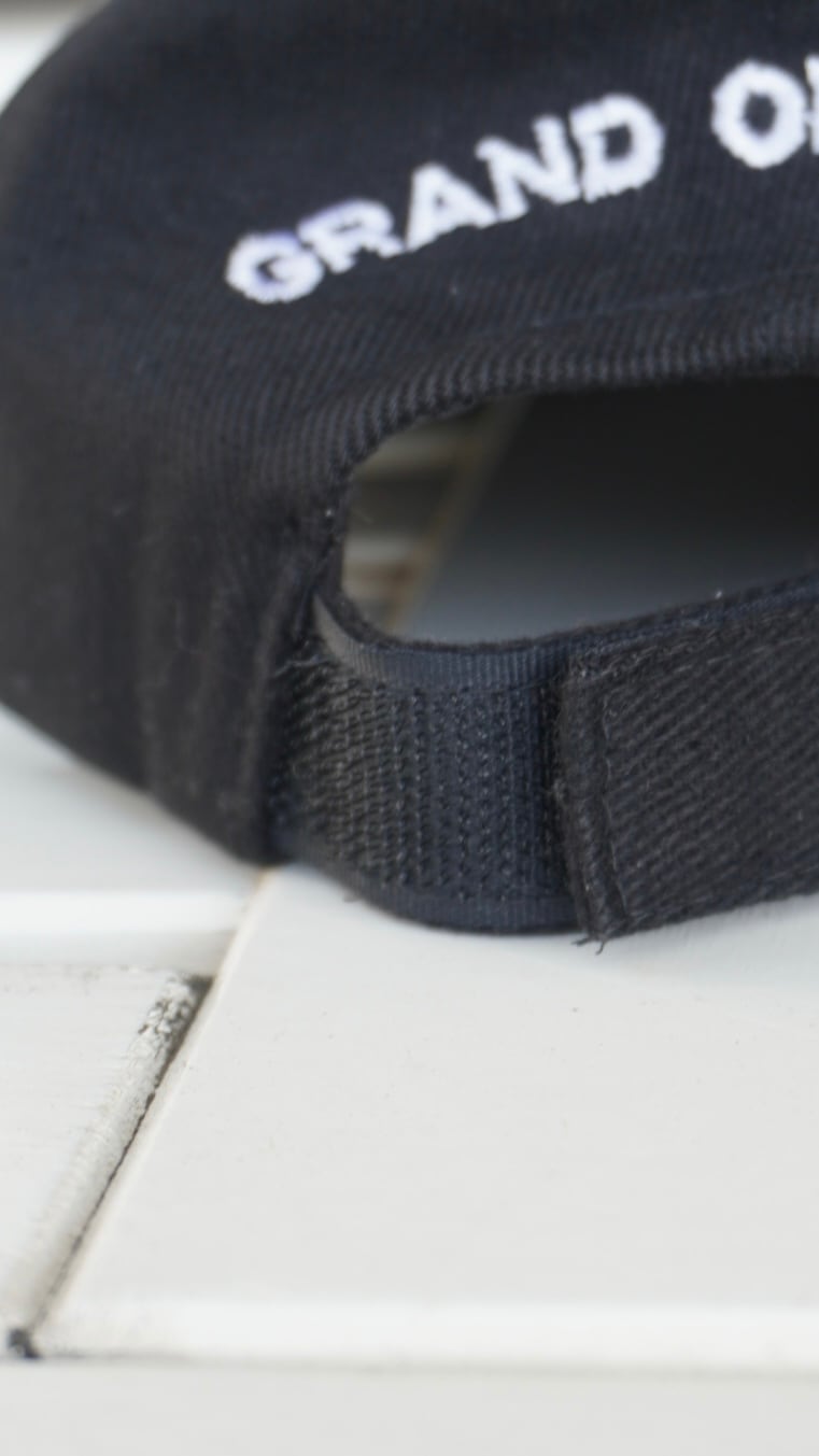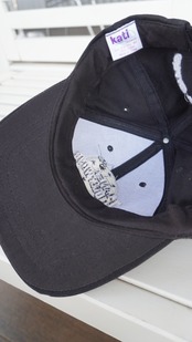 ブラックにシルバーのロゴ刺繍が施されたキャップ