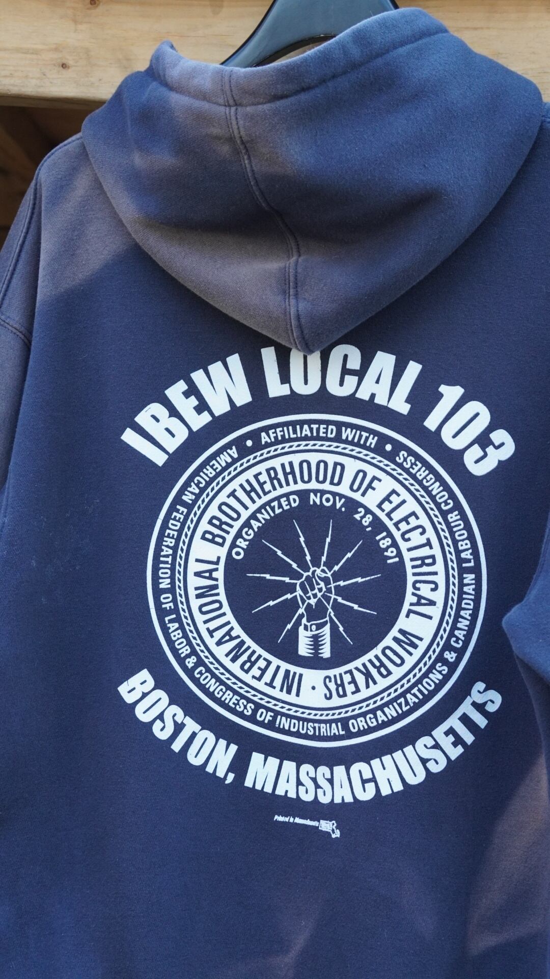 “IBEW LOCAL 103 / POWERING BOSTON” のラウンドロゴプリントが最高なやつ。