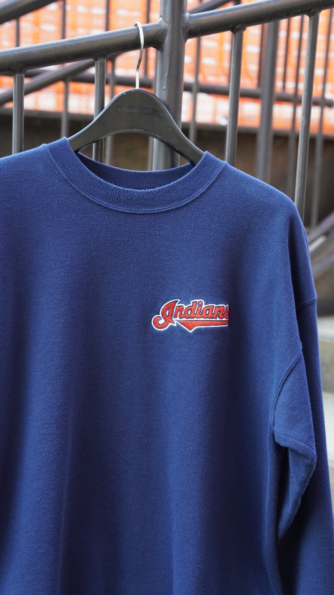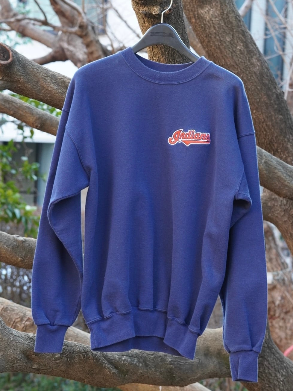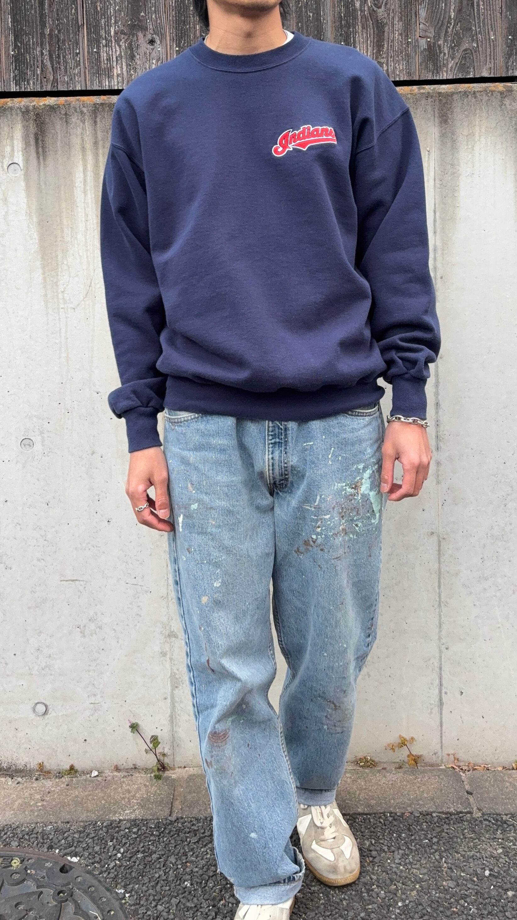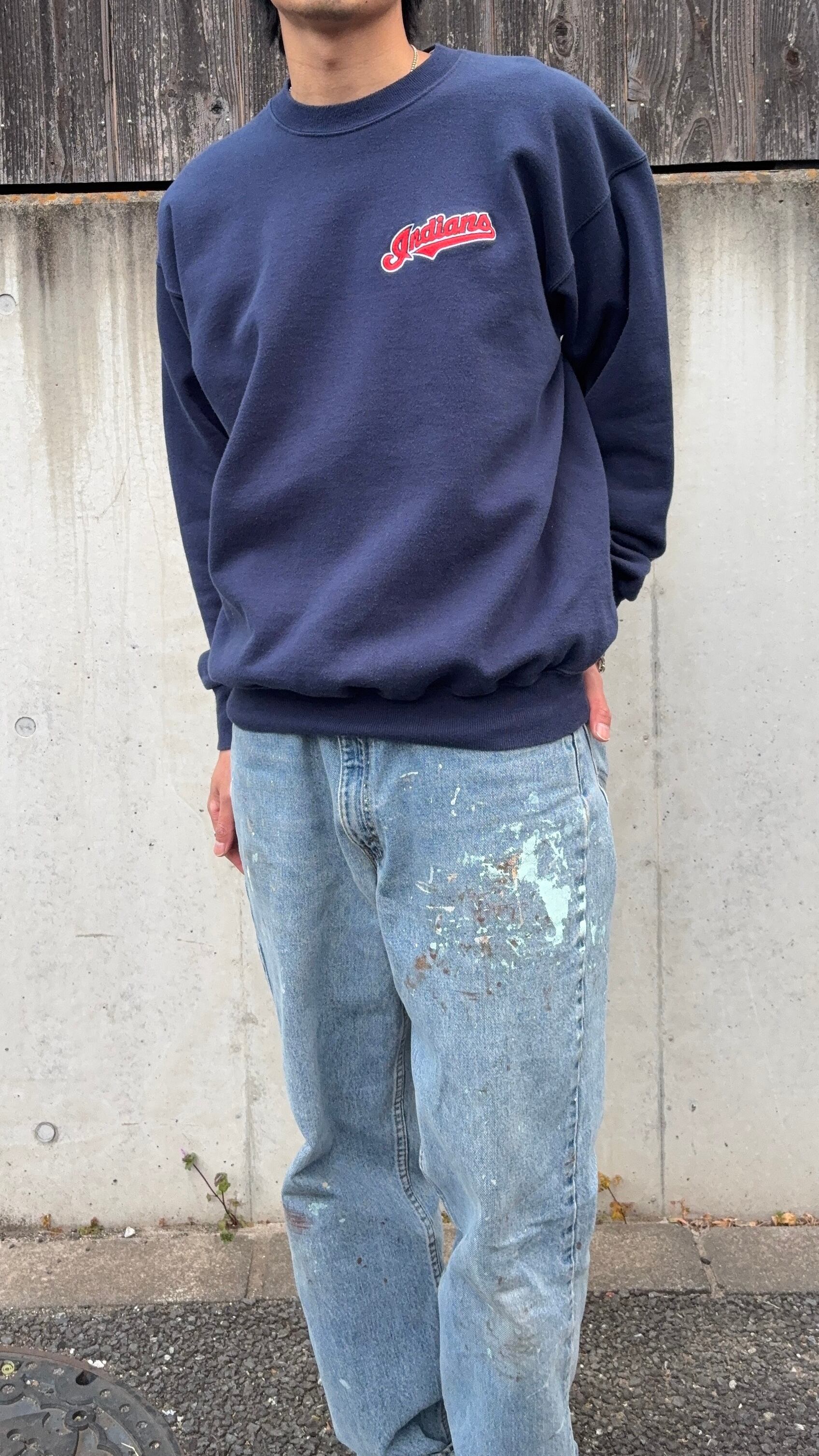 1990年代中盤〜後半の【champion(チャンピオン)】ボディに、メジャーリーグMLBチームのIndians(インディアンス)ロゴが刺繍された王道スウェット