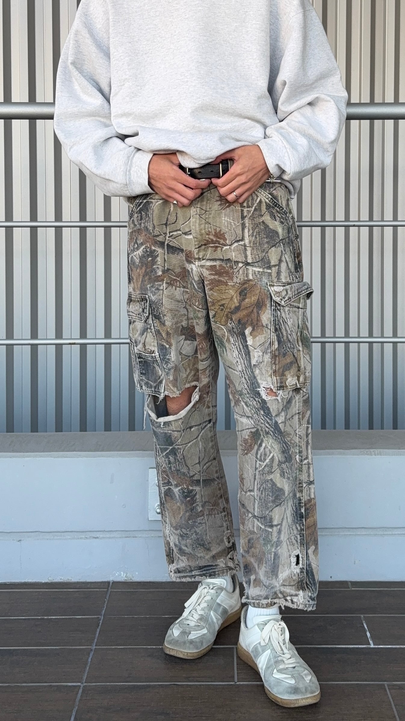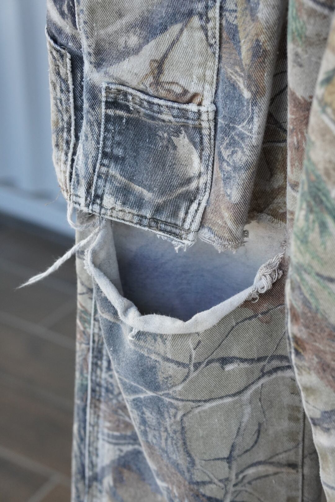 Made in Mexico・YKKジップ・コットン100%ツイル・ 立体カーゴポケット・フェードしたリアルツリー柄という好条件が揃った一本。