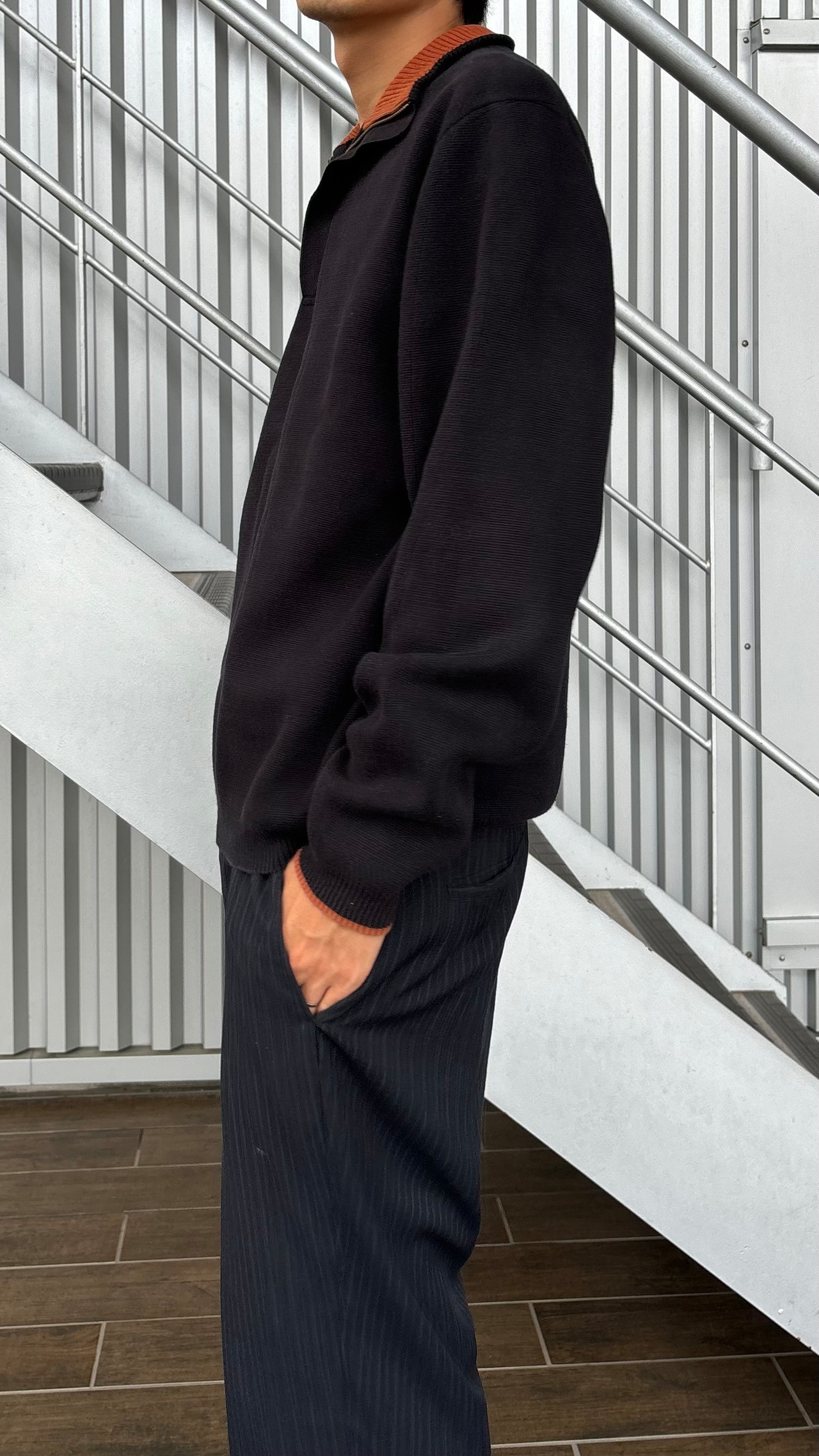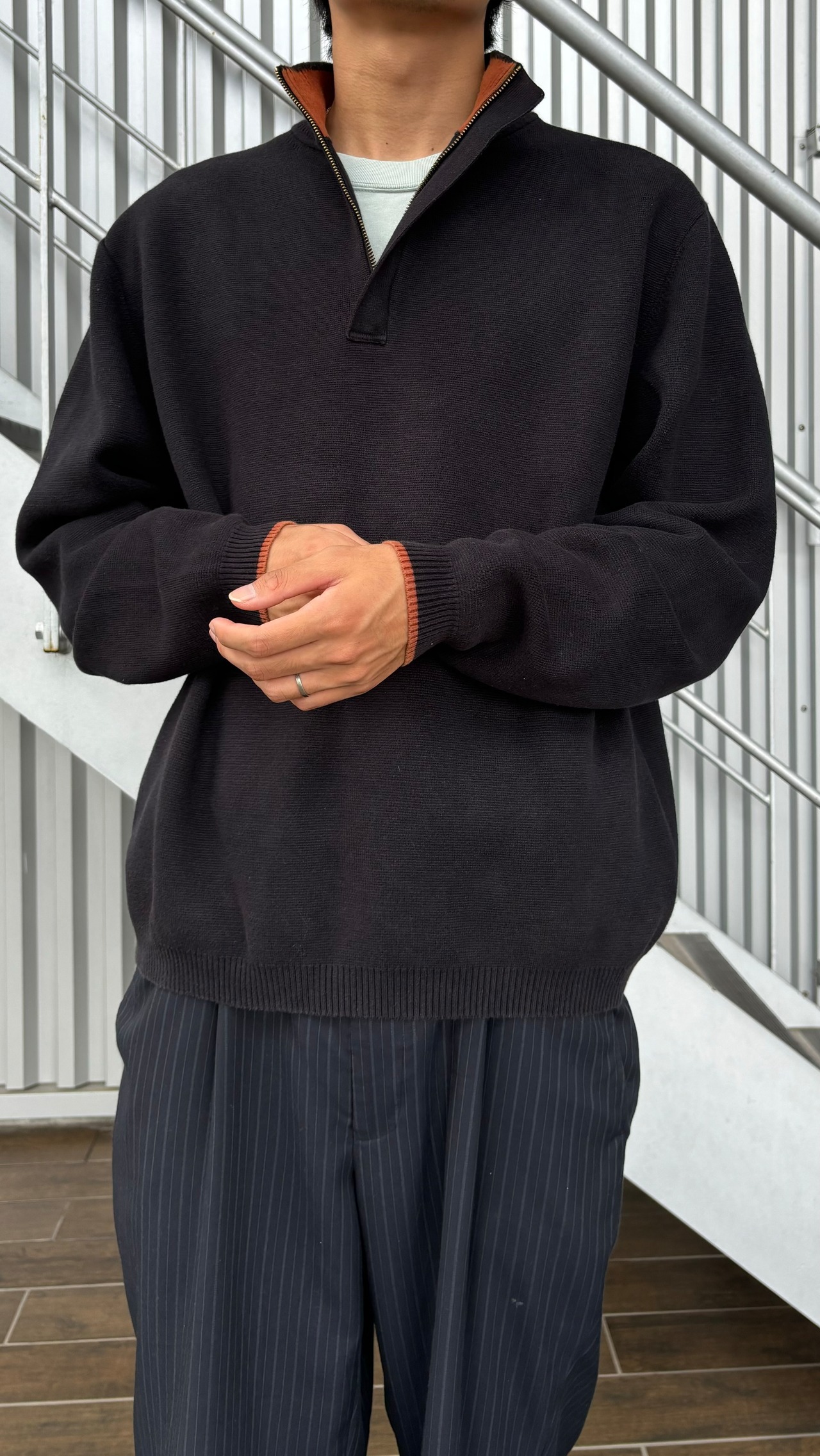 そしてハーフジップが特徴のコットンニット